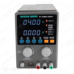 Máy cấp nguồn SUGON 3005D hỗ trợ hai cấp nguồn 5V và 30V với dòng điện 5A, có bảo vệ quá dòng và chạm chập